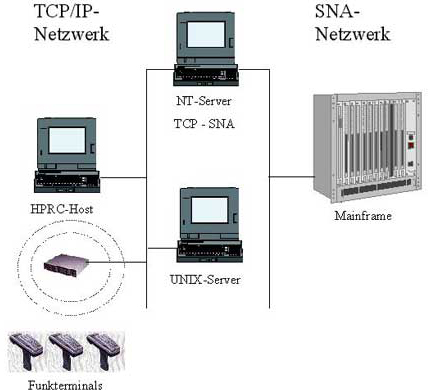 Erfolgte die Vernetzung der Kundenrechner bereits unter SNA, wird für die Gateway-Funktionlität (TCP/IP-SNA) ein NT-Server mit Microsoft SNA-Services eingesetzt.